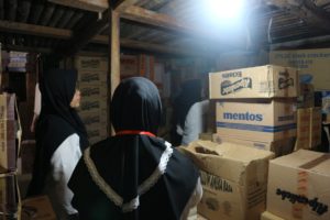 “Kondisinya memang lembab sekali dan pengap dan penataannya tidak rapi, walaupun gudang penyimpanan menyimpan produk-produk makanan dan minuman kalau disusun rapi dan diberi penerangan kan lebih mudah dalam mencari makanan dan mengontrol makanan yang rusak dan kadaluarsa,” ujar Misgi.