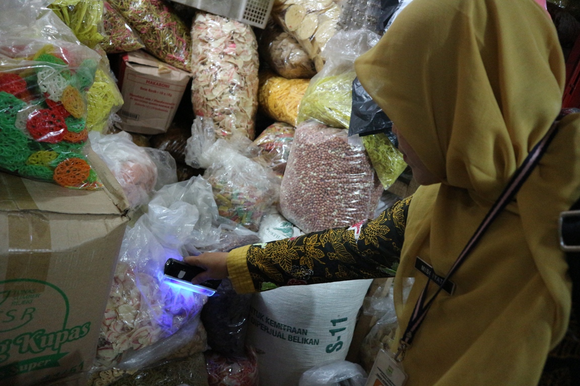 “Sebelum dites kami juga menggunakan lampu UV untuk mengecek dan menunjukan langsung ke penjual agar penjual kerupuk ini tahu kalau kerupuk yang dijualnya mengandung Rhodamin B,” imbuhnya.