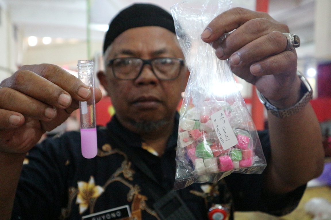 “Ini luar biasa di Pasar Bobotsari ini, hari ini kita hanya mengambil 10 sampel yang diduga mengandung pewarna, ternyata dari 10 sampel semuanya positif mengandung Rhodamin B,”kata Kasi Kefarmasian dan Alat Kesehatan pada Dinkes Purbalingga, Sugeng Santoso saat Pemantauan Makanan dan Minuman di Bulan Ramadan dan menjelang Idul Fitri 1440 H di Pasar Bobotsari, Kamis (16/5).